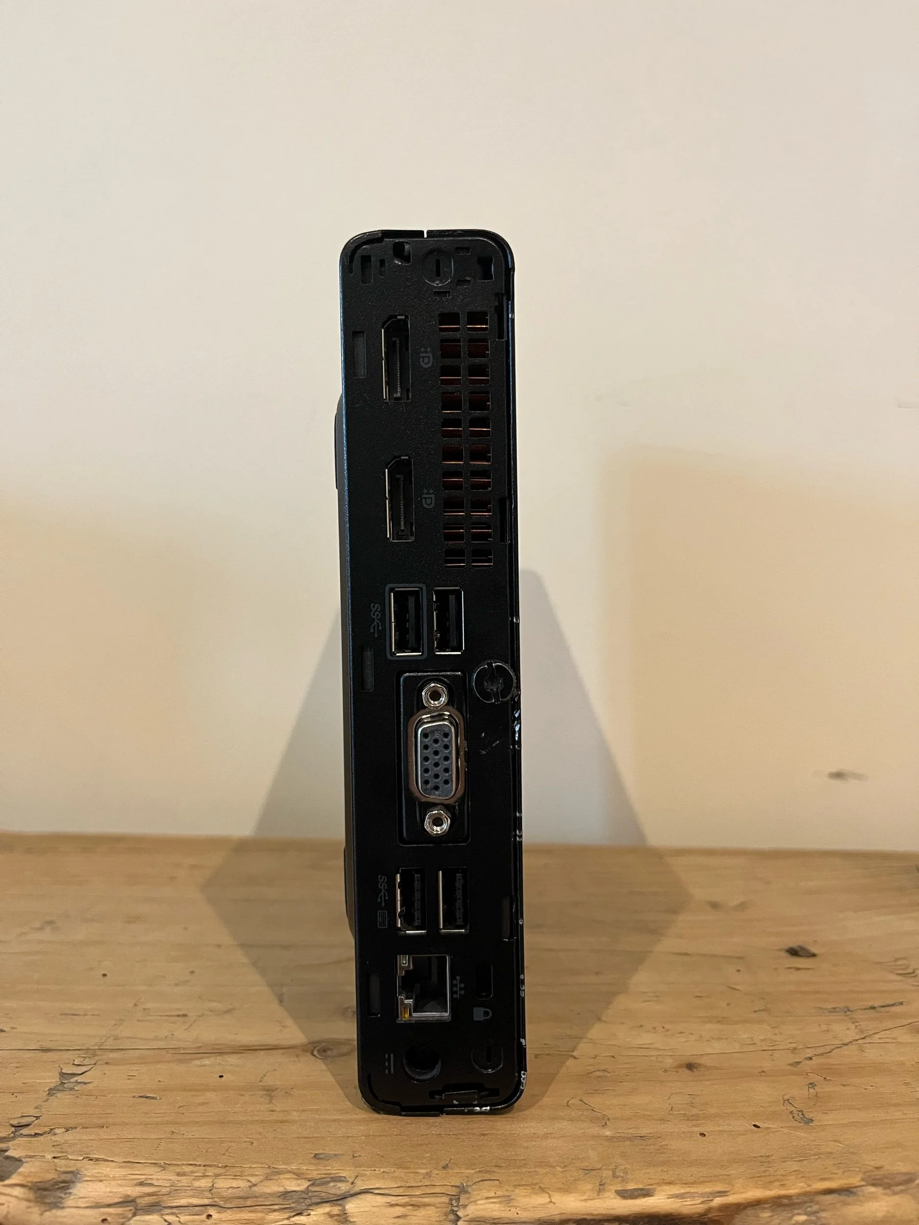 This item is in a good condition but does have a series of nicks in the back of the item and there is a small scratch on the elite desk name